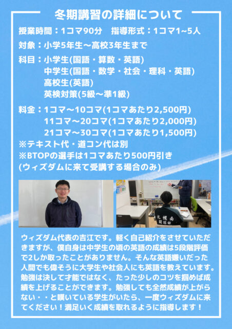 12月10日までに冬期講習の申し込みした方は1コマ当たり200円引きになります。