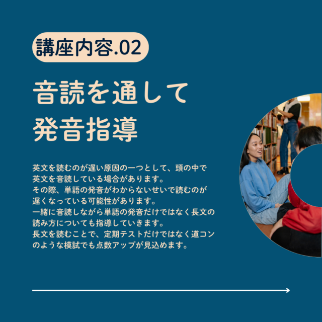 講座では英単語の暗記の仕方だけではなく、長文問題を通して音読、文法、問題演習を行なっていきます。