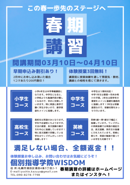 札幌市清田区清田にある個別指導塾個別指導学院ウィズダムsapporo-wisdom.com